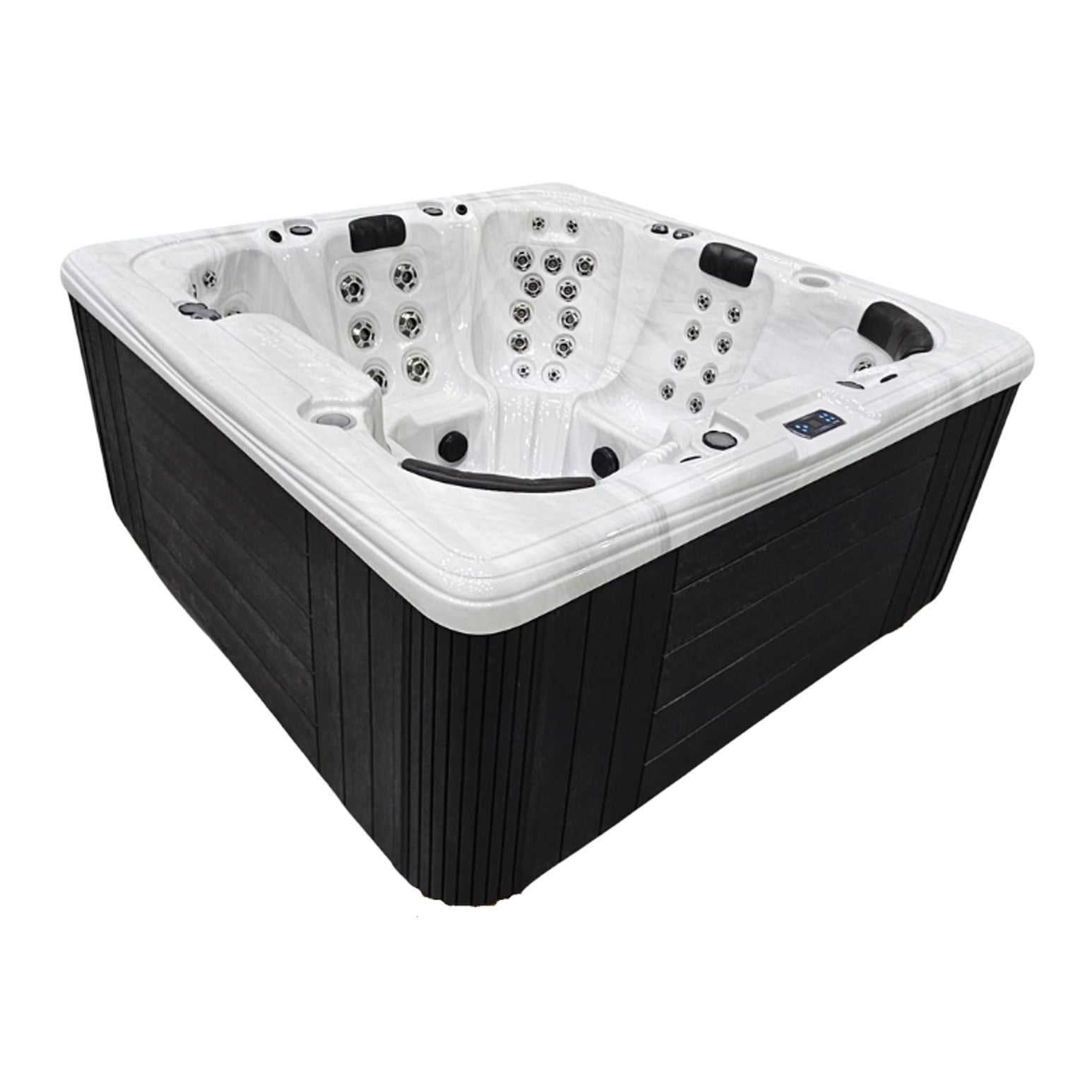 Spécifications Nombre de jets : 48 Nombre de sièges : 7 Nombre de couchettes (chaise longue) : 0 Nombre de fontaines : 0 Lumières : Lumières DEL + Multi-jets Air/eau Poids vide LB : 950 lbs Poids vide KG : 430 kg Poids en eau LB : 4 475 lbs Poids en eau KG : 2 030 kg Connectivité Wi-Fi : Non Dimensions : 91" X 91" X 39" Nombre de litres d'eau : 1 600 Nombre de pompes: 2 pompes LX 2 vitesses 4HP Couleur d'acrylique : Sterling Prix inclus : marche, lève couvert, couvert, disjoncteur.Livraison disponible à partir de 349.95$