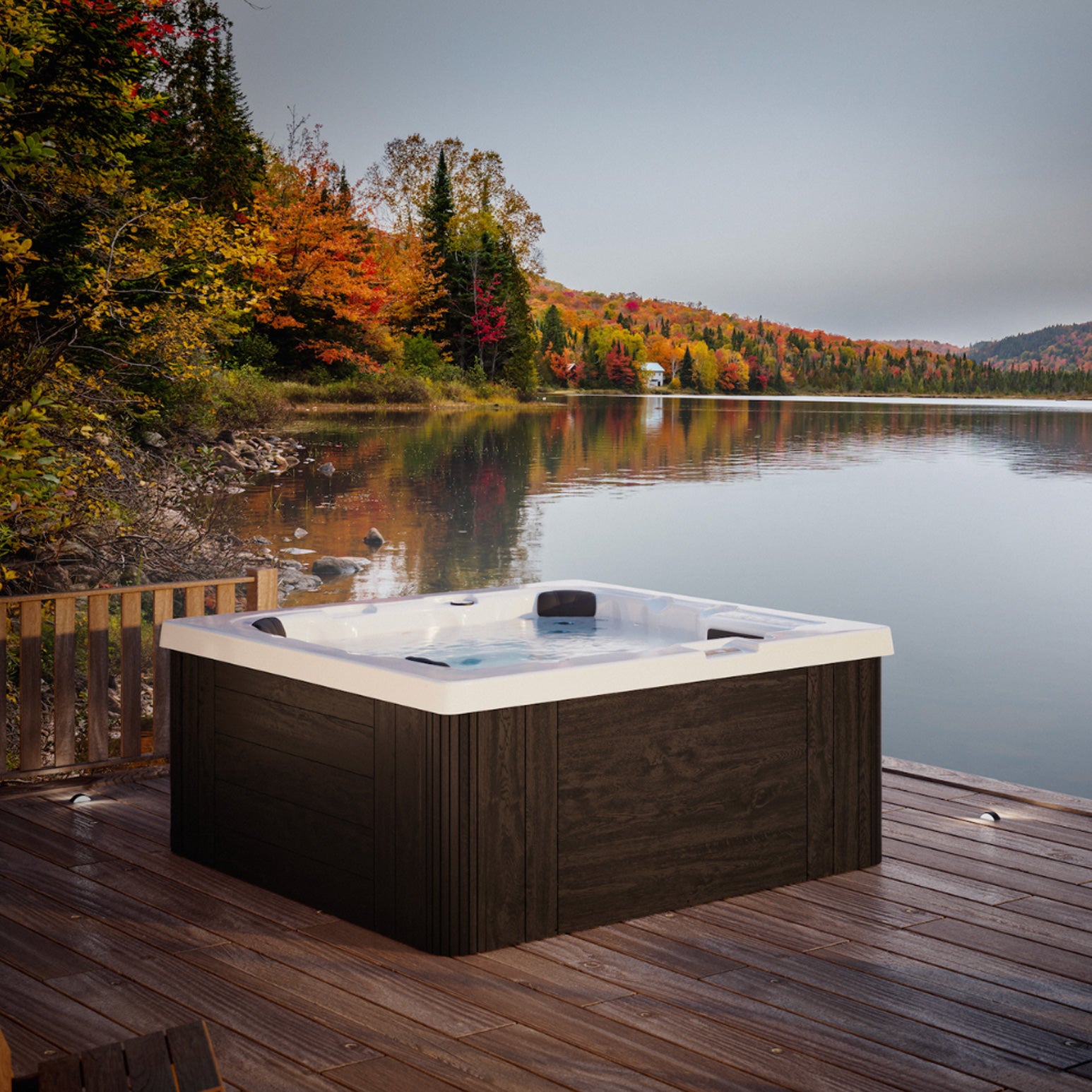 Spécifications Nombre de jets : 30 Nombre de sièges : 5 Nombre de couchettes (chaise longue) : 1 Lumières : Lumières DEL Poids vide LB : 815 lbs Poids vide KG : 370 kg Poids en eau LB : 3 800 lbs Poids en eau KG : 1 720 kg Connectivité Wi-Fi : Non Dimensions : 82" X 82" X 39" Nombre de litres d'eau : 1 350 litres Nombre de pompes : 1 pompe LX 2 vitesses 4HP Couleur d'acrylique : Sterling Prix inclus : marche, lève couvert, couvert, disjoncteur.Livraison disponible à partir de 349.95$