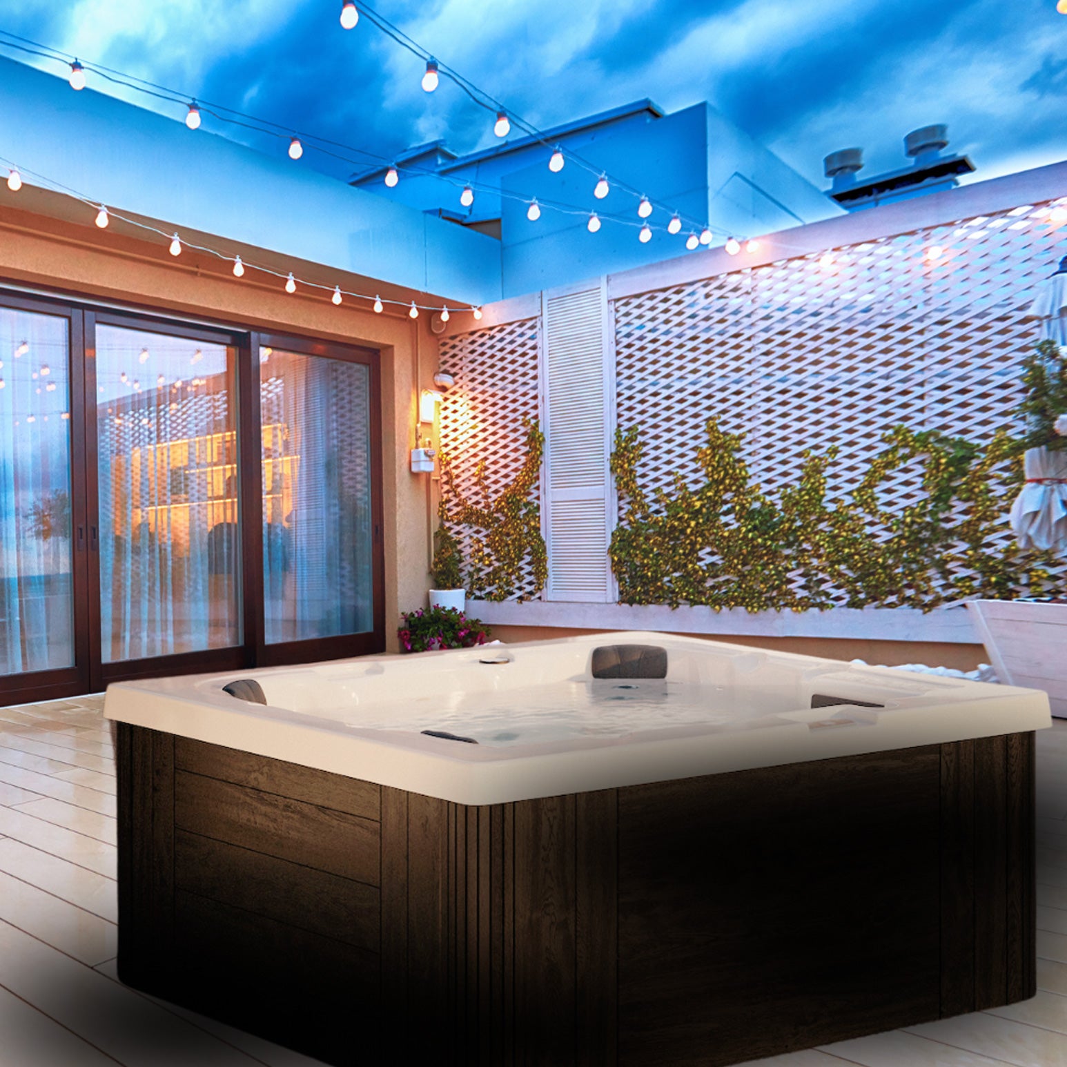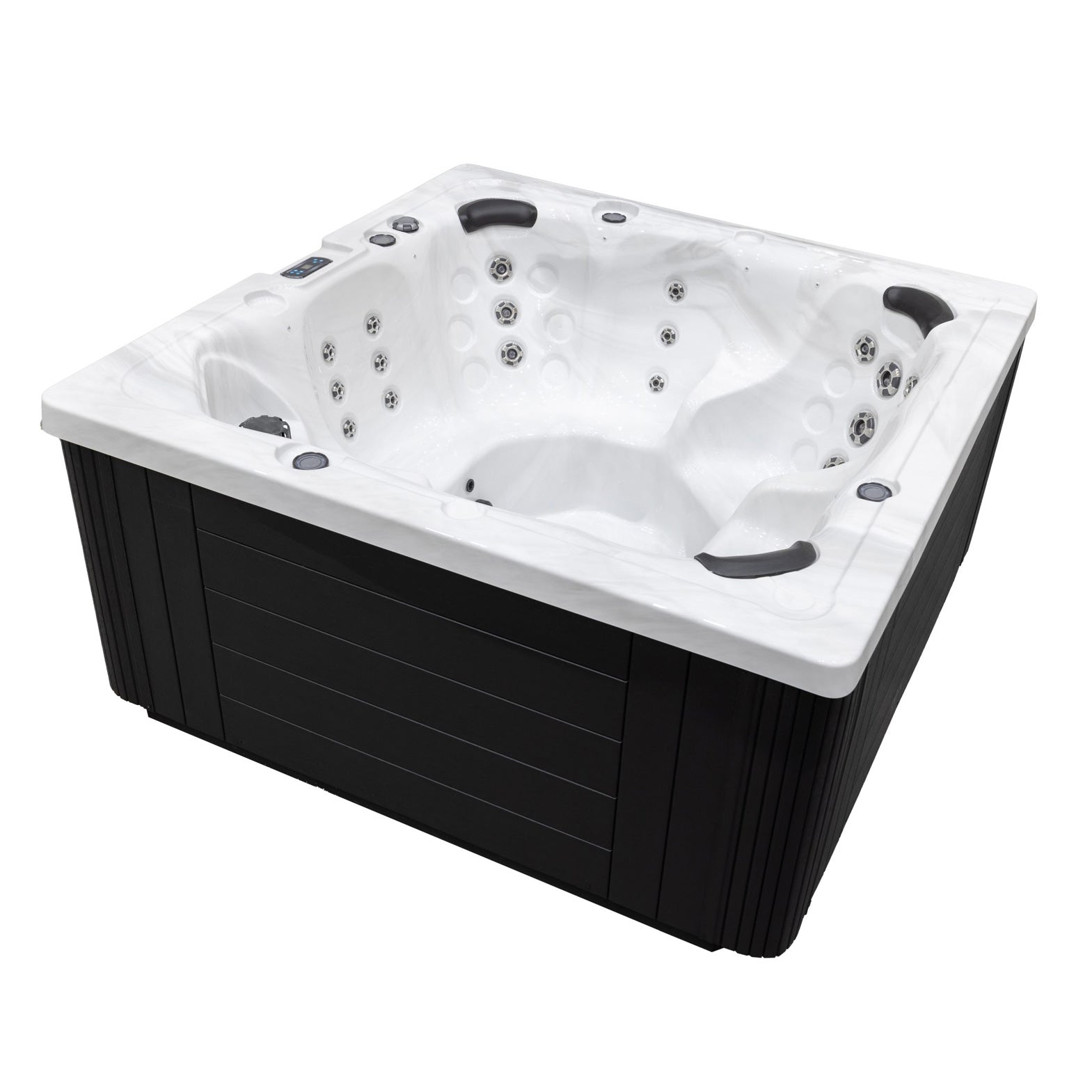 Spécifications Nombre de jets : 30 Nombre de sièges : 7 Nombre de couchettes (chaise longue) : 0 Lumières : Lumières DEL Poids vide LB : 815 lbs Poids vide KG : 370 kg Poids en eau LB : 3 800 lbs Poids en eau KG : 1 720 kg Connectivité Wi-Fi : Non Dimensions : 82" X 82" X 39" Nombre de litres d'eau : 1 350 Nombre de pompes : 1 pompe LX 2 vitesses 4HP Couleur d'acrylique : Sterling Prix inclus : marche, lève couvert, couvert, disjoncteur. Livraison disponible à partir de 349.95$